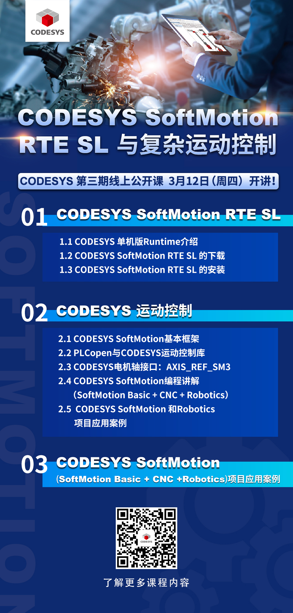 CODESYS,2020年第三次線上公開課將于3月12日 20:00 播出。課長1.5小時。本次課程主題為《CODESYS SoftMotion RTE SL與復雜運動控制》。