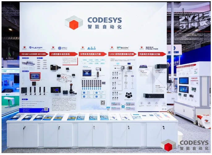 國內(nèi)外眾多知名自動化控制系統(tǒng)和機器人生產(chǎn)廠商均部署使用了 CODESYS 編程開發(fā)平臺,在本屆工博會的 CODESYS 展位上展出了匯川技術(shù)、臺達(dá)集團、研華科技、中車集團、深圳英威騰、上海寶信、無錫信捷、深圳大族機器人、翼菲自動化等企業(yè)的控制系統(tǒng)、智能裝備和智能機器人,如上海繁易的光伏行業(yè)硅片分選機、長沙碩博的小麥機整車電控系統(tǒng)、臺達(dá)集團的半導(dǎo)體清洗機、富昌維控的剝線機、上海福氏新能源的風(fēng)能電控系統(tǒng)等諸多行業(yè)解決方案。