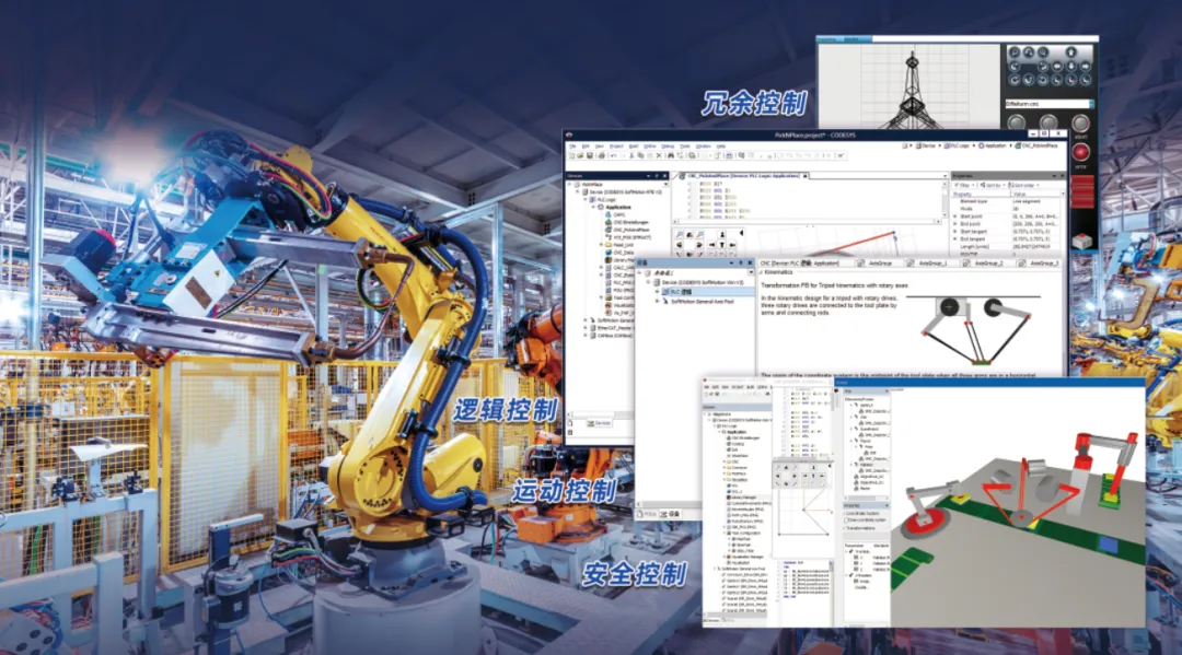CODESYS SoftMotion CNC & Robotics 是面向數控和機器人行業(yè)推出的編程開發(fā)軟件工具包套件。CODESYS 將運動控制與邏輯控制合二為一,并將其集成在基于 IEC 61131- 3 國際標準的編程開發(fā)系統(tǒng)(IDE)和 CODESYS 運行時系統(tǒng)(Runtime System)軟件中,組成了 CODESYS SoftMotion CNC & Robotics 開發(fā)工具包套件(數控與機器人控制)。無論是實現電子齒輪、電子凸輪(CAM)控制、還是實現復雜的CNC 控制(數控)和機器人控制,均可使用 CODESYS 軟件輕松完成。